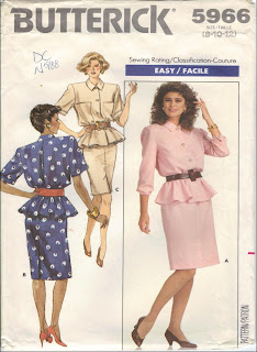 Vogue 8305. This pattern includes a mock wrap dress and top, a jacket with shaped fronts which can be wrapped, and pants with shaped waistband and hemline vent.