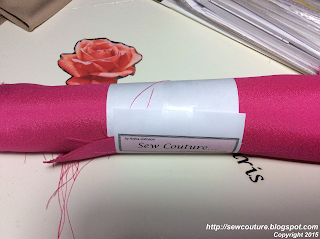 In fact, this image, and the blog post from which it originated, reminded of my time working at So-Fro Fabrics and how we packaged remnants once the bolts got down to the final 1 to 1.5 yards of fabric. So, with this image as my inspiration, I used Word to create "wrappers" to document the fabric details and wrap around my remnants for storage. I formatted the document to print two wrappers per page.